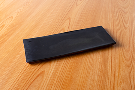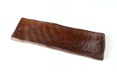 羽反(はぞり)と呼ばれる端が反り返る木地の形状を生かして持ちやすくなっています。彫刻の溝は下色の黄色が研ぎ出されて風合いが出ています。