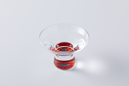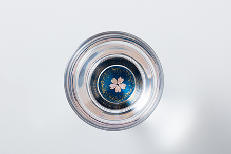 - “ガラス素材”に高岡漆器の代表的な特徴の一つである螺鈿(あわび貝)技法をとりいれ、漆で仕上げた「螺鈿ガラス」。ガラスを通して見える螺鈿の輝き、日本酒を通して見える螺鈿の神秘性をお楽しみください。