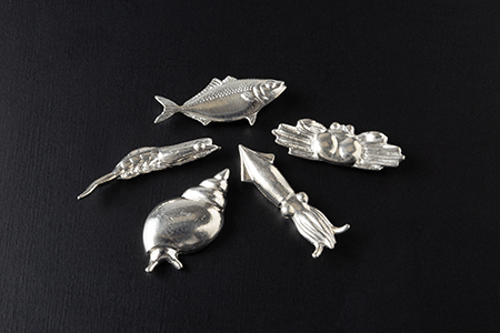 - 富山湾を代表する海の幸を形にした純錫製の箸置きです。純錫には抗菌作用があります。ホタルイカ・ブリ・ベニズワイガニ・バイ・シロエビの5種類あります。