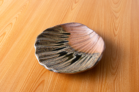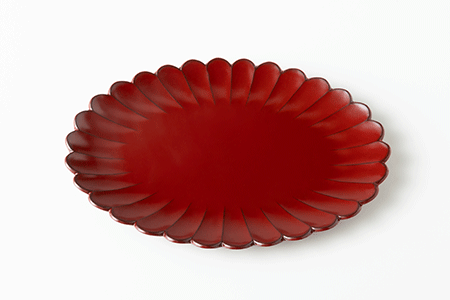 羽反盛皿 彫刻根来