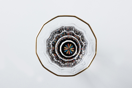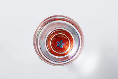 - “ガラス素材”に高岡漆器の代表的な特徴の一つである螺鈿(あわび貝)技法をとりいれ、漆で仕上げた「螺鈿ガラス」。ガラスを通して見える螺鈿の輝き、日本酒を通して見える螺鈿の神秘性をお楽しみください。